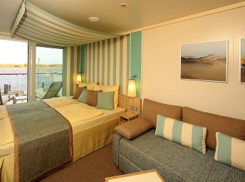 K základnému vybaveniu kajuty patrí: regulovateľná klimatizácia, kúpeľňa so sprchou a toaletou, sušič na vlasy, elektronický sejf, skriňa, satelitná interaktívna Tv (na lodiach AIDAcara/vita/aura je Tv iba satelitná), rádio a telefón, župany. Postele sa dajú oddeliť alebo spojiť do manželskej. Antialergické posteľné prádlo. Ak máte balkón, na recepcii vám na požiadanie zapožičajú hojdaciu sieť.
