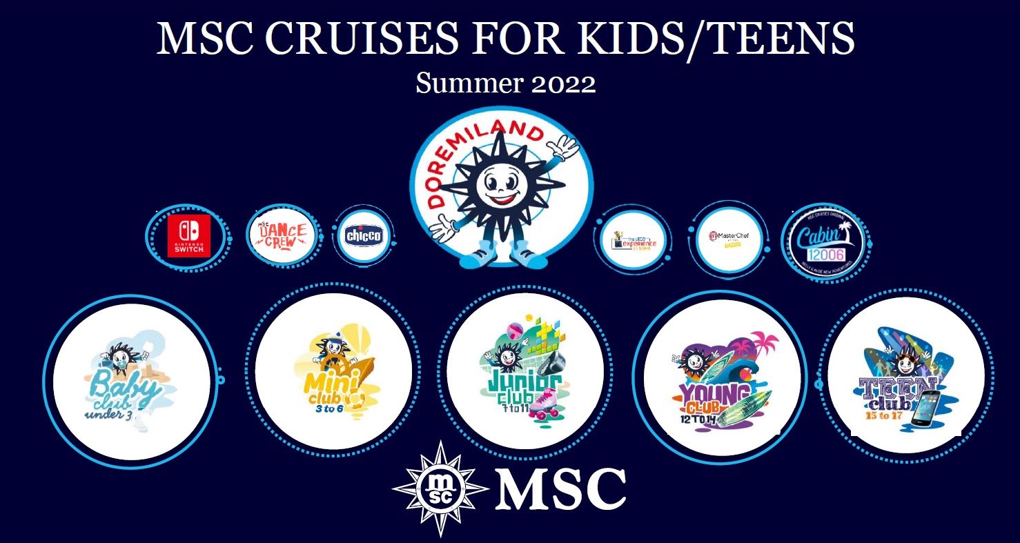 MSC Cruises ponúka päť bezplatných klubov pre deti vo veku 0-17 rokov, každý s aktivitami primeranými veku a vyškoleným viacjazyčným personálom, ktoré ponúkajú každý deň až 14 hodín primeraných aktivít.