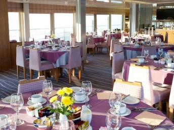 Ranajky - bufet v reštaurácii alebo, ak je pekné počasie, a podľa požiadaviek, na otvorenej hornej palube. Obed formou bohatého bufetu na hornej palube. V priemere dvakrát do týždňa sa koná barbecue priamo na palube alebo na brehu. Večere sa podávajú v jedálni, a la carte, bez stanoveného zasadacieho poriadku.