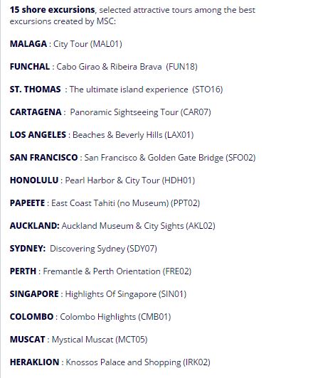Lodná spoločnosť MSC Crociere na prestížnom podujatí All Star of the Sea predstavila svoju prvú plavbu okolo sveta. MSC World Cruise sa uskutoční na palube lode MSC Magnifica. Loď vypláva z Janova 5. januára 2019 a do tohto prístavu sa vráti, po kompletnom oboplávaní planéty, 119 dní neskôr. Počas svojej dlhej cesty rozdelenej do 49 úsekov prejde 6 kontinentov a navštívi 32 krajín.