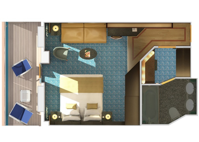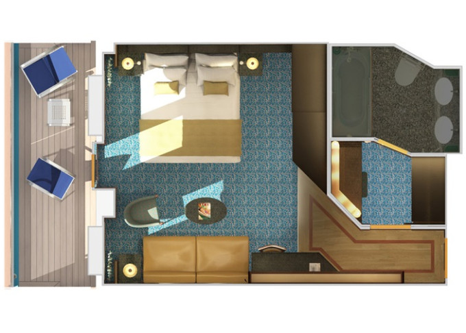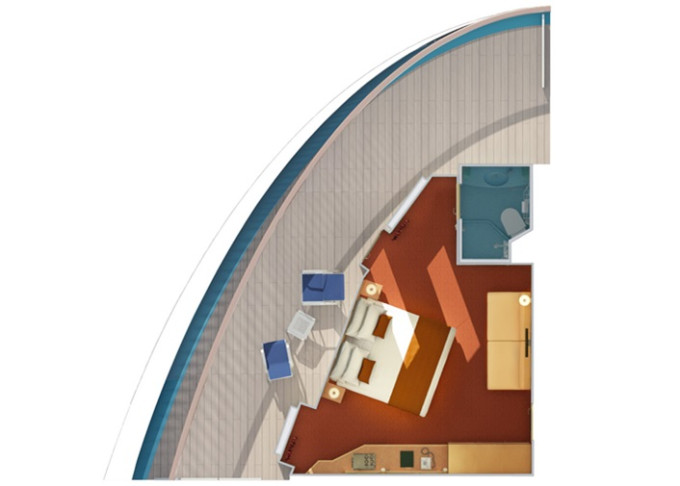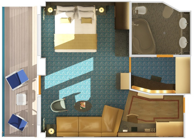 SS - Suite Cloud 9 Spa 25 m² / balkón 6 m². 11. paluba vpredu. Max 3 osoby. Výhody Suite. Voľný vstup do Spa a balíček Cloud 9 Spa. 2 642 € 1 321 € za osobu