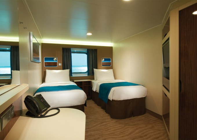 | OB - Vonkajšia kajuta s veľkým oknom od 14 m². Veľké neotvárateľné okno. 5. paluba. Max 2-5 osôb. | 1 458 € 729 € za osobu |