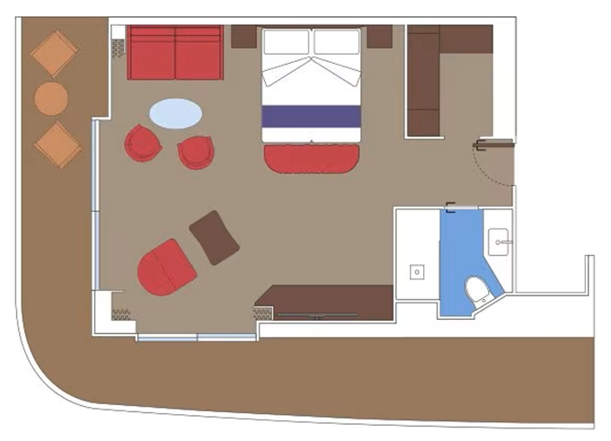 | SXJ - Grand Suite Aurea s terasou a vírivkou 35 m² + balkón od 37 m². Vírivka. 15/16. paluba. Cenový model Aurea. | 5 282 € 5 282 € za osobu |