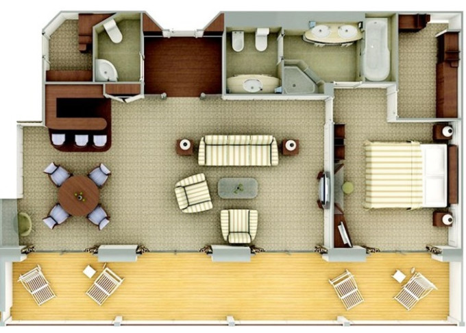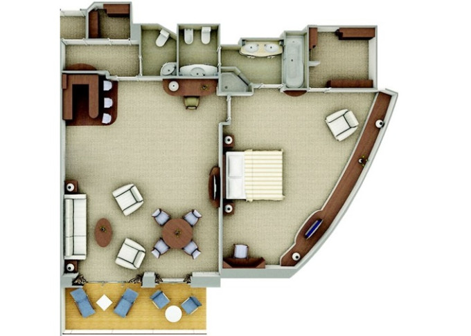 DX - Deluxe Veranda Suite 26 m² + 6 m² balkón. 6,8,9. paluba stred. Max 3 osoby. 15 800 € 7 900 € za osobu