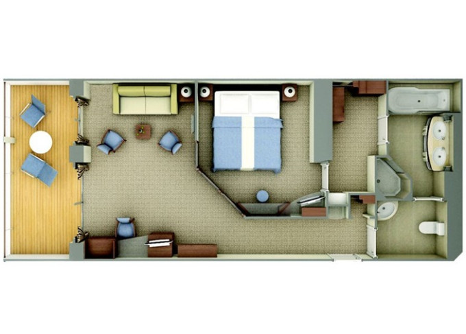 SV - Superior Veranda Suite 26 m² + 6 m² balkón.5. až 8. paluba. Max 3 osoby. 14 600 € 7 300 € za osobu