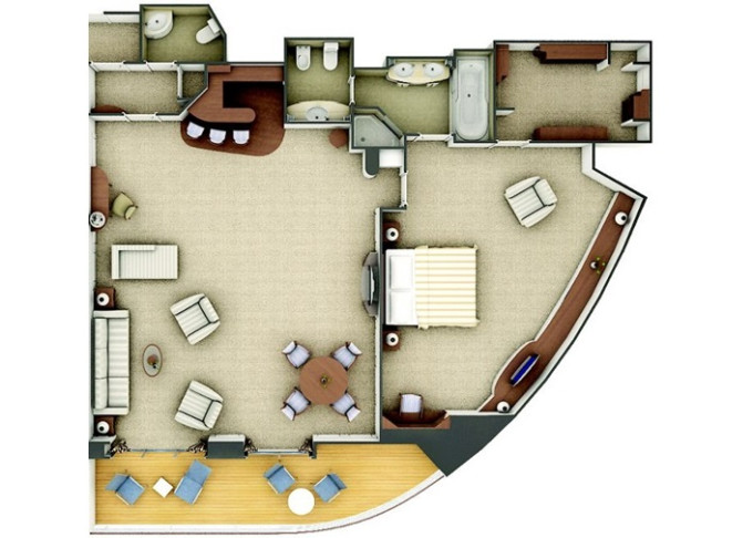 O2 - Owner's Suite 2 107 m² + 20 m² balkóny. Owners Suite O1 spojená s Vista Suite. 7. paluba stred. Max 5 osôb. 100 400 € 25 100 € za osobu