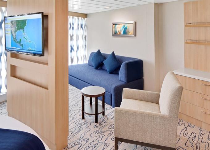 | VP - Ocean View Panoramic Suite (bez balkónu) 37 m². Panoramatické neotvárateľné okná.12. paluba - vpredu. Max 6 osôb. Výhody Royal Suite Class. | 7 306 € 7 306 € za osobu | ||