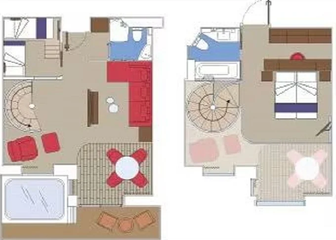 | YJD - Yacht Club Duplex Suite s vírivkou 46 m² + balkón 30 m². Vírivka. 2 podlažia, šatník, 2 kúpeľne (1 s vaňou). Max 4 osoby. 16. paluba. Cenový model MSC Yacht Club. | 10 452 € 3 484 € za osobu |